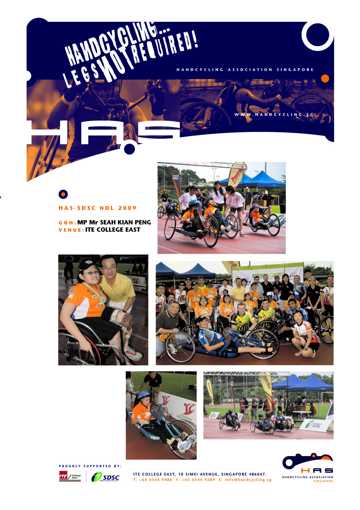 The Para Cycling Federation of Singapore (PCFS) was formerly known as the Handcycling Association of Singapore (HAS). The organisation was formed in early 2007, by members of the Spinal Cord Injury Support Group Singapore, comprising of survivors of spinal cord injury, and the rehab professionals at Tan Tock Seng Hospital Rehabilitation Centre. Then, it was just an informal gathering to handcycle at Yio Chu Kang Stadium on Saturday mornings. Its mission was to get more disabled persons into sports as a meaningful and beneficial activity for overall health and well-being.